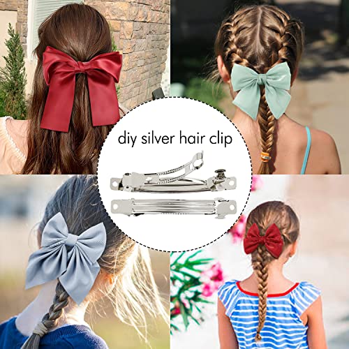 Confezione da 50 fermagli per capelli da 8 cm, color argento, quadrati, rettangolari, con base semplice, per fai da te, per fiocchi e coda di cavallo, accessori per donne e ragazze
