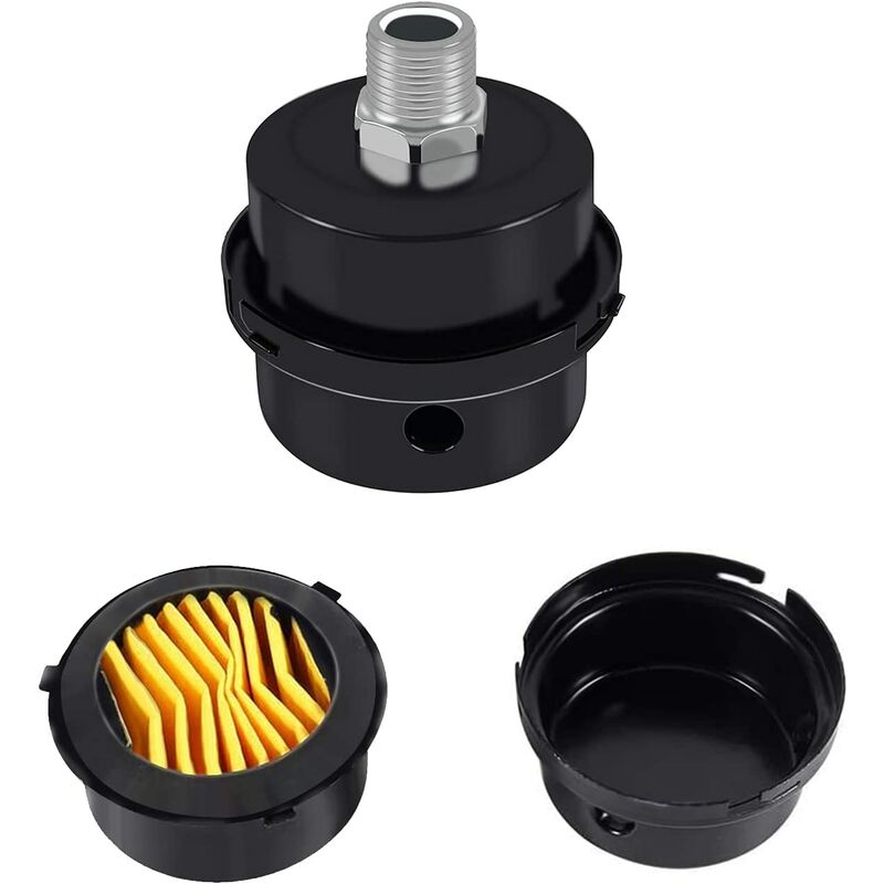 Pacchetto incluso: riceverai 4 filtri dell'aria per compressore con filettatura 3/8 di diametro 16 mm. Il materiale interamente in metallo nero non è facile da danneggiare e ha una maggiore durata. [Riduzione del rumore] L'ingresso del compressore d'aria adotta un silenziatore del compressore d'aria, che può bloccare efficacemente la polvere nell'umidità e ridurre il rumore . Ideale per gli accessori del compressore. 【Prolunga la vita utile】Utilizza il compressore d'aria silenzioso per migliorare l'efficienza e la durata del compressore d'aria. 【Facile da installare】Il compressore d'aria utilizza una filettatura standard da 3/8. Devi solo avvitarlo nel dispositivo. L'installazione è semplice e veloce. Ampia gamma di applicazioni: il filtro silenzioso è adatto per compressori d'aria oil-free e può essere utilizzato anche in apparecchiature a eliminazione del rumore come ventilatori, compressori d'aria, ecc. aria, caldaie, sistemi di scarico, generatori, pompe e raccordi per tubi di