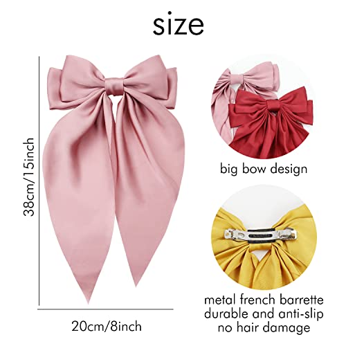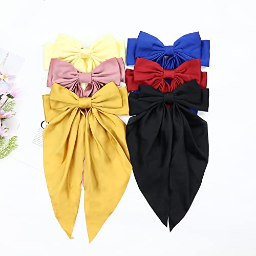 Confezione da 6 fiocchi di raso grandi grandi per capelli da donna con fiocco gigante oversize per capelli a forma di fiocco francese con coda lunga e setosa, fermaglio per coda di cavallo