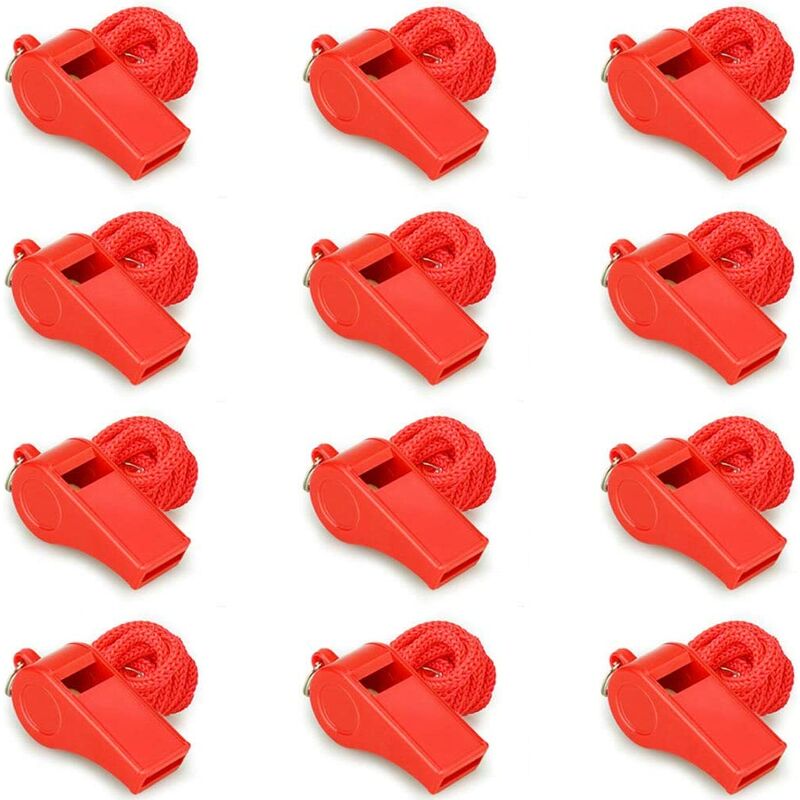 PACCHETTO - 12 fischietti in plastica con cordini. Questi fischietti rossi attirano l'attenzione. Tu e i tuoi fischietti rossi sarete facilmente notati in ogni situazione. Perfetto per soccorritori, autodifesa e situazioni di emergenza. SUONO FORTE E CHIARO - I fischietti hanno un suono forte e chiaro. Fino a 120 dB facilmente. MANI LIBERE - Ogni fischietto è dotato di un comodo cordino in nylon, puoi appenderlo al collo o su un supporto a parete, per tenere le mani libere. QUALITÀ PREMIUM - Realizzata in plastica ABS spessa, ecologica e non tossica, più resistente di altri fischietti in plastica. Si prega di notare che a causa della misurazione manuale e delle differenze di visualizzazione, ci potrebbero esserci lievi differenze tra i singoli prodotti e le foto.