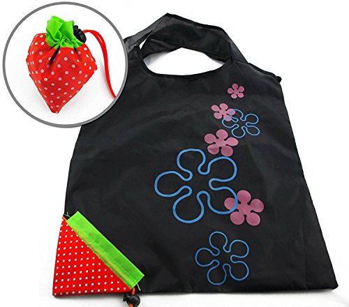 Confezione da 3 Fragola riutilizzabili pieghevole Shopping ECO Borse con Pouch Spalla tote