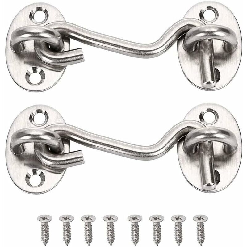 Dimensioni del prodotto: gancio di chiusura della porta esterna: 75 mm/3, diametro del gancio: 6 mm (vedere la terza foto per le dimensioni specifiche). Vite: 1,5 cm di lunghezza. Alta qualità: il gancio per cabina in acciaio inossidabile è realizzato in acciaio inossidabile di alta qualità, che non è facile da arrugginire, deformare e sbiadire e la superficie è liscia e chiara. durevole. Sicurezza e privacy: il gancio della cabina in acciaio inossidabile è stampato e sagomato in un unico pezzo e la capacità di carico è solida e stabile. Installazione semplice: il gancio della cabina regolabile è facile da installare con 8 viti, non sono richieste abilità o strumenti speciali. Basta trapanare le viti nei fori e attaccare la piastra ad occhiello per completare il lavoro. Ampia gamma di usi: il gancio della cabina può essere utilizzato per recinzioni in legno, porte della cabina, finestre a bilico, garage, persiane, capannoni, ripostigli, porte, ripostigli, porte della stalla, persiane
