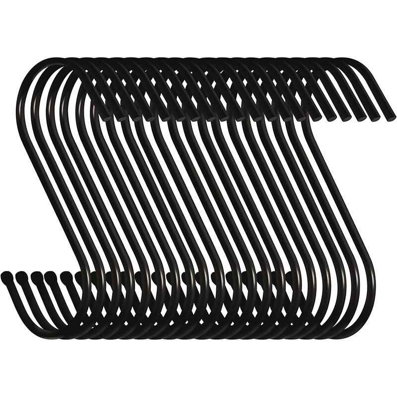 peso massimo: 5 kg. Lunghezza: 9 cm - Apertura: 3 cm - Diametro filo: 3 mm. A forma di S, non c'è bisogno di incollare o avvitare. Ideale per utensili da cucina e può essere applicato a parete per organizzare utensili da cucina come pentole, padelle, mocio, cucchiai per risparmiare molto spazio in cucina. Questi ganci appendiabiti sono adatti anche per l'uso in un armadio, bagno, bagno, garage, officina e ufficio o come cesto per piante pensili, clochenspiel o lanterna da esterno con questi ganci in acciaio robusti secondo i tuoi desideri. La confezione contiene 30 ganci;