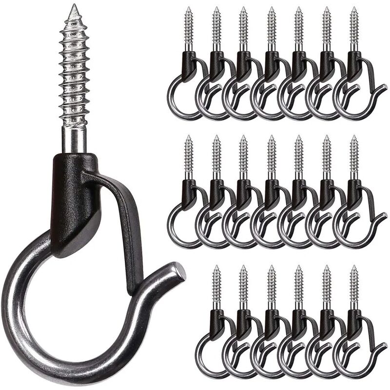 Confezione da 20: perfetta per appendere in modo sicuro oggetti leggeri come luci esterne, ala gocciolante, piante, casette per uccelli, tende, corde, catene, tazze, mangiatoie, fioriere e altro ancora. Design della fibbia di sicurezza: una fibbia mobile è installata sulla vite ordinaria e gli oggetti appesi non cadranno, aumentando la sicurezza del prodotto ad alte prestazioni. Installazione semplice: I ganci per appendere le luci di Natale sono facili e veloci da installare. Puoi battere direttamente nel legno con un martello o avvitare nel legno con una chiave inglese. Alta qualità: ruggine, vento e agenti atmosferici resistente. Questo prodotto può supportare fino a 40 libbre, adatto per uso interno ed esterno. Caratteristiche: Lunghezza gancio: 5,3 cm Lunghezza vite: Apertura di 2 cm, 1,2 cm Questi prodotti possono sostenere fino a 18 kg, adatti per uso interno ed esterno. Quantità spedita: 20 pezzi Avviso: Questi articoli contengono punte acuminate funzionali, si prega di