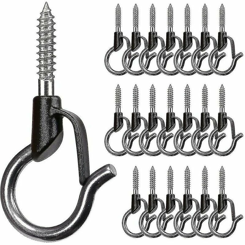 Confezione da 20: perfetto per appendere in modo sicuro oggetti leggeri come luci esterne, ala gocciolante, piante, casette per uccelli, tende, corde, catene, tazze, mangiatoie, fioriere e altro ancora. Design della fibbia di sicurezza: una fibbia mobile è installata sulla normale vite e gli oggetti sospesi non cadranno, il che aumenta le prestazioni di sicurezza del prodotto. / Installazione semplice: i ganci per appendere le luci di Natale sono facili e veloci.facile da installare. Puoi picchiettare direttamente nel legno con un martello o avvitare nel legno con una chiave inglese. Alta qualità: resistente alla ruggine, alle macchie, al vento e agli agenti atmosferici. Questo prodotto può contenere fino a 40 libbre, adatto per uso interno ed esterno. Cosa ottieni: confezione da 20 ganci Q.