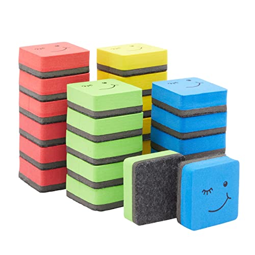 Confezione da 24 gomme magnetiche per lavagna bianca, design con viso che fa amico, ideale per bambini, casa, scuola e ufficio, 4 colori, 4 x 0,7 x 1,9 cm