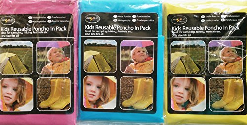 Confezione da 3 impermeabili modello poncho, da bambino, riutilizzabili