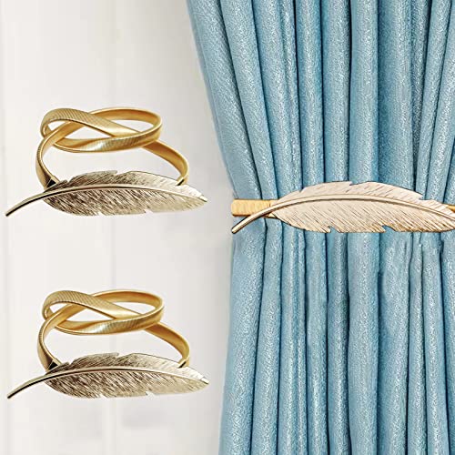 Materiale premium: 2 fermatenda a forma di piuma dorata, lunghezza corda: 40 cm, lunghezza lama: 13 cm, diametro: 10 cm. I nostri fermatenda sono realizzati in lega di alta qualità, squisita fattura, morbidezza e forma libera, perfetti per decorare la tenda della finestra in modo nuovo e fresco. La corda dura per tende ha un'elevata tenacità, non è facile da rompere e ha un'eccellente resistenza alla corrosione e durata.