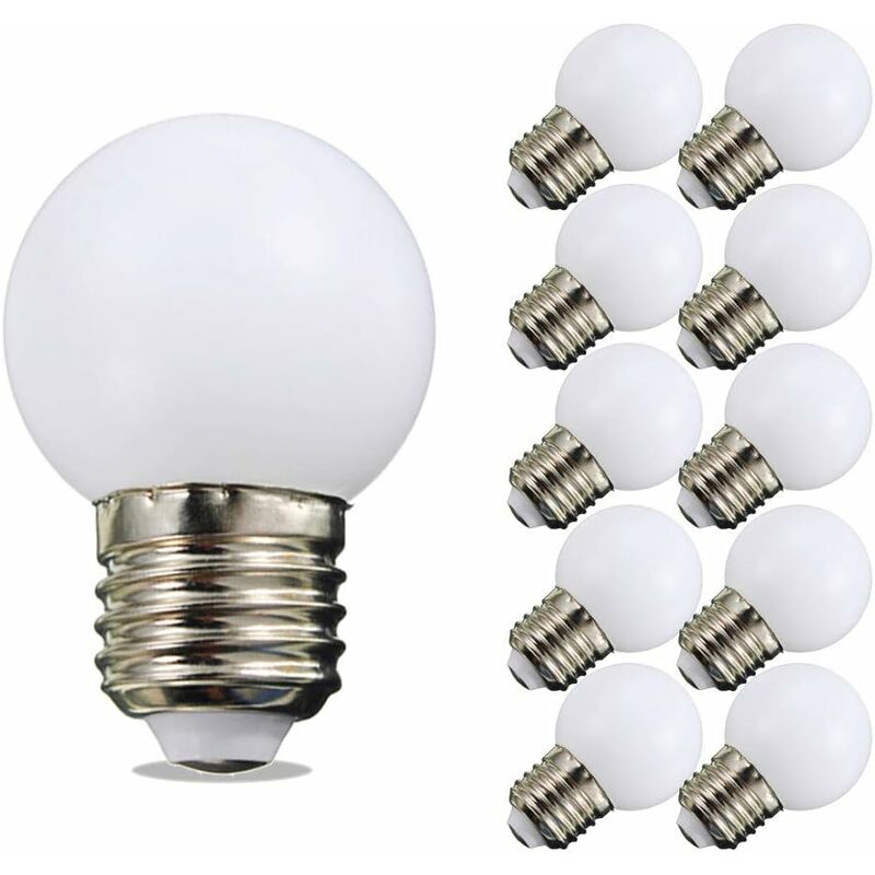 Incandescente da 10W, risparmio del 90% sull'illuminazione in bolletta. Base standardE27: presa con vite comune, da installare direttamente negli infissi con base E27 Materiale: custodia per PC ignifuga, in grado di resistere a temperature elevate di 280°, utilizzarli in modo più sicuro. Ampia applicazione: adatto per ventilatore da soffitto, specchio cosmetico, luce di striscia, veranda, applique, lampada da tavolo, lampada a sospensione, luce notturna, ecc.