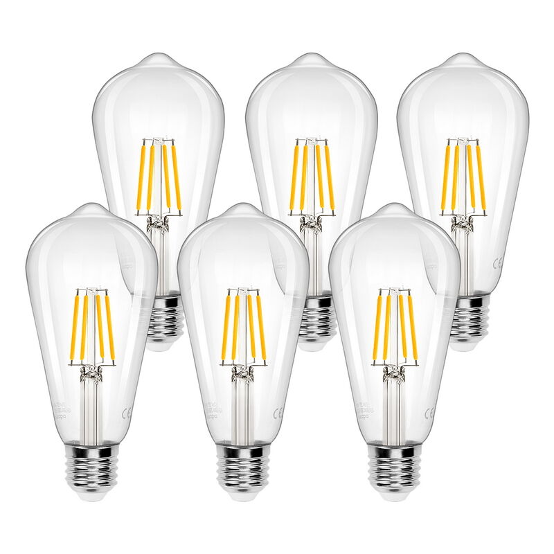 Trasforma la tua casa o il tuo locale con un tocco di classe senza rinunciare all'efficienza energetica grazie a questa esclusiva confezione da 6 lampadine LED a filamento. Le lampadine ST64 da 4W emettono una luce bianco caldo a 2700K che ricorda l'atmosfera accogliente delle lampadine tradizionali, aggiungendo un tocco di eleganza a ogni stanza.Queste lampadine non solo esaltano l'aspetto del tuo ambiente, sia esso domestico o commerciale, ma ti permettono di risparmiare energia ed elettricità, riducendo notevolmente la bolletta energetica. Con un consumo energetico di soli 4W e una lunga durata, queste lampadine ti faranno risparmiare denaro a lungo termine.Sostituire le tue vecchie lampadine con queste led a filamento è un gioco da ragazzi. Basta svitare le vecchie lampadine e avvitare queste per trasformare istantaneamente l'illuminazione della tua casa. Con questa confezione da 6 pezzi, puoi facilmente illuminare tutte le stanze con eleganza.Con le lampadine LED a filamento