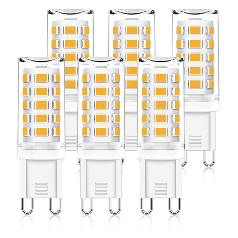 Installazione semplice e rapida - Presa G9 standard, ampiamente utilizzata in camere da letto, soggiorni, cucine, lampadari, soffitti, ecc. Questa lampadina LED G9 3000K non ronza, ronza, sfarfallio, sfarfallio durante il lavoro. 80+ CRI, ripristina il colore dell'oggetto in modo vivido e naturale, trasforma la tua casa in un luogo piacevole e piacevole. ideale per la decorazione d'interni. [Ampie applicazioni] Vite a vite Edison G9 standard, angolo del fascio di 360°. colore bianco caldo, alto CRI, luce perfetta per caffè, bar, club, ristoranti, mostre, camere da letto, sale da pranzo, corridoi, vetrine, centri commerciali, arte, musei. creano un ambiente bianco caldo, caldo e luminoso, simile a quello alogeno 【Buone prestazioni, maggiore durata】Protette da sovraccarico, cortocircuito e protezione da surriscaldamento, le lampade a mais da 3,5 W forniscono un'elevata luminosità e una durata di oltre 35.000 ore. Sostituisci meno spesso, riduci i costi di manutenzione.
