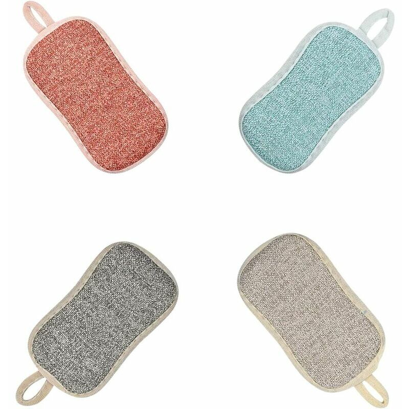 Spugna abrasiva a doppia azione: lo strato intermedio del cuscino per lavastoviglie è una spugna morbida e spessa. Ha una grande elasticità e rimbalza rapidamente. Può produrre una ricca schiuma durante l'uso del detersivo per piatti e rimuove facilmente grasso e macchie. Riutilizzabile: questa spugna per piatti è facile da pulire con acqua o detergente e non produce odori o macchie. Ha una cinghia di sospensione sulla parte superiore per una facile asciugatura e conservazione. È pulito e igienico e può essere utilizzato ripetutamente. Materiale della superficie: la spugna da cucina da un lato è in microfibra per pulire e asciugare, l'altro è uno scrub non abrasivo per tagliare facilmente grasso e sporco, utilizzando solo acqua. Il lato abrasivo elimina leggermente i residui di cibo e le macchie di colla. Ampia applicazione: queste spugne da cucina magiche funzionano molto bene su piatti, elettrodomestici in acciaio inossidabile come padelle o padelle, piani di lavoro, piastre di