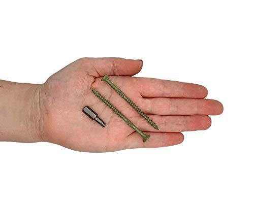 Le viti verdi con finitura anticorrosione sono forti, durevoli, affidabili e di lunga durata. La testa con auto-svasatura assicura una finitura elegante. Adatte per uso esterno