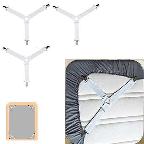 Confezione: 4 bretelle per lenzuola, una per ogni angolo di un letto e facile da usare.