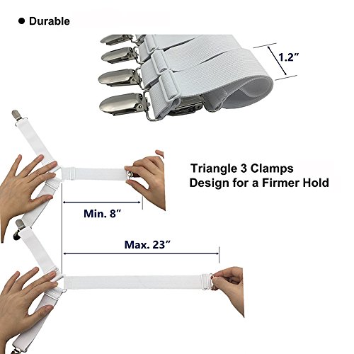 Confezione da 4 lenzuola Conner triangolo clip, lenzuolo Holder cinghie, chiusura regolabile lenzuolo, 3 vie materasso di supporto fissaggio il triangolo lenzuolo clip detentore con pinze White