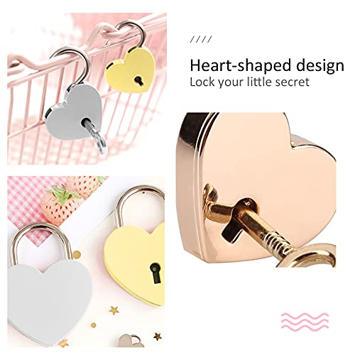 Lucchetto a forma di cuore: riceverai un set di mini lucchetti a forma di cuore. La confezione include 2 lucchetti argento e 2 lucchetti dorati con 4 chiavi. I due colori sono belli e pratici, che possono facilmente aiutare a proteggere la tua privacy.
