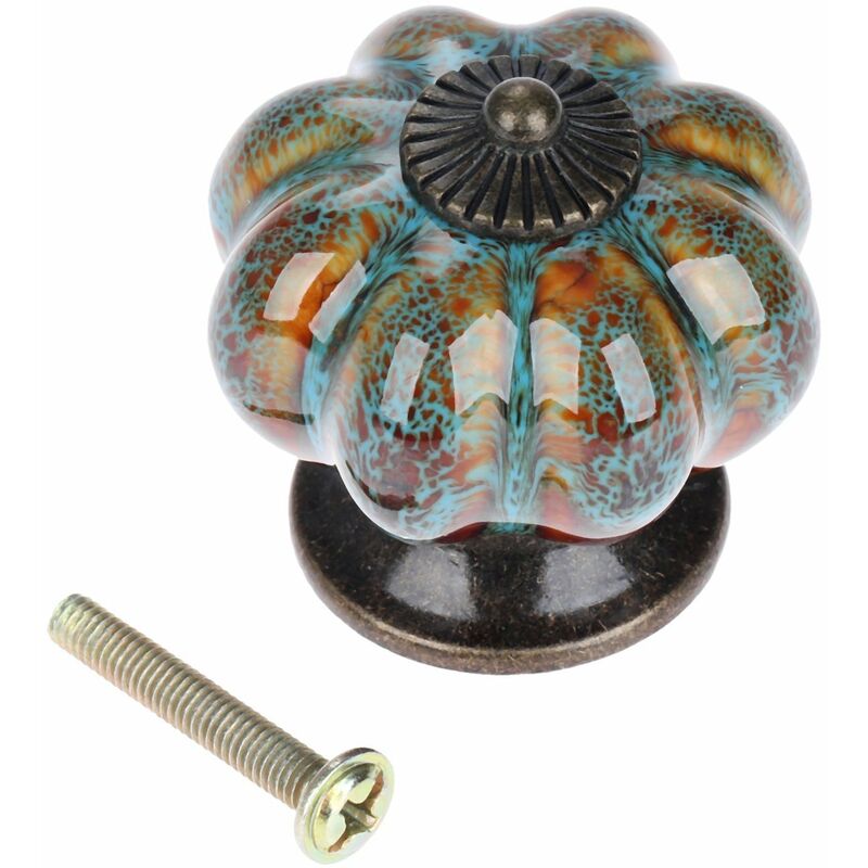 Materiale: ceramica + lega di zinco (resistente e di buona qualità) Misura manopola: 4,0 x 4,0 cm (adatta per cassetti lunghi circa 30 cm) Contenuto: 10 manopole + 10 viti Design speciale: la forma a zucca non è solo particolarmente bella, ma anche facile da rimuovere dal cassetto. Anche i colori dei nostri bottoni sono speciali. È la scelta giusta per i tuoi mobili ristrutturati. Pomello per armadietto in zucca Maniglie per cassetti vintage retrò uniche Colore diverso Rinnova i tuoi mobili Le maniglie per mobili sono disponibili in diversi colori e combinazioni, scegli la maniglia che preferisci per rinnovare i tuoi mobili. Pomello blu Pomello per armadietto in zucca Le maniglie dal design unico sono anche ottime decorazioni. Le manopole a forma di zucca sono molto facili da impugnare. La manopola è realizzata in ceramica e lega di zinco, resistente alla corrosione e ideale per l'umidità ambienti. Pomelli a forma di zucca in colore vintage retrò con stampa leopardata in vari