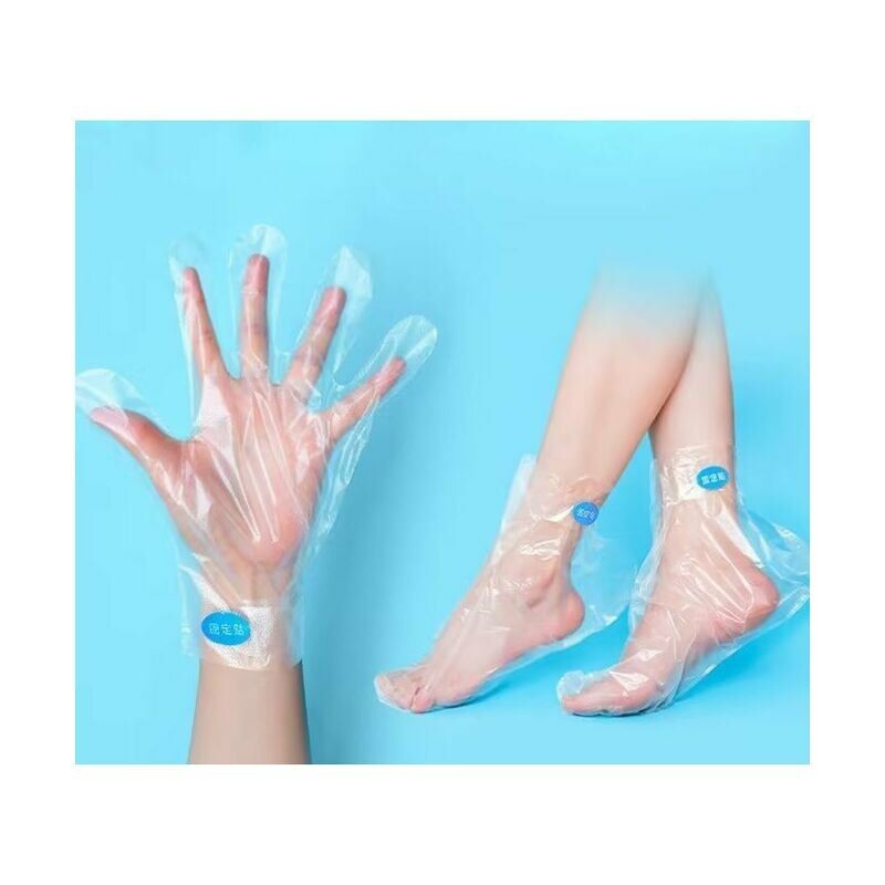 Confezione da 400 (100 mascherine per i piedi + 100 mascherine per le mani + 200 cerotti di fissaggio) mascherine monouso per i piedi e mascherine per le mani in plastica trasparente per pedicure, bagno di paraffina, trattamento con cera a caldo, spa ciabatte monouso in plastica trasparente per bagni di paraffina, pedicure, trattamenti con cera calda, spa e ipertermia. Un must per il trattamento con cera: utilizzare dopo aver immerso mani e piedi in cera che può gocciolare su pavimenti/piani di lavoro. Aiutano anche a mantenere la cera calda intorno a mani e piedi, prevenendo gli schizzi e trattenendo l'umidità extra. Igienico e versatile: da usare nei bagni di paraffina e altri trattamenti per la pelle senza schizzi. Aiuta a trattenere il calore e una migliore penetrazione dei nutrienti, allevia la rigidità e il dolore da artrite. Efficace anche contro mobili batik o calze termiche. Utilizzare dopo aver immerso i piedi nella paraffina che potrebbe gocciolare sul pavimento. Aiutano