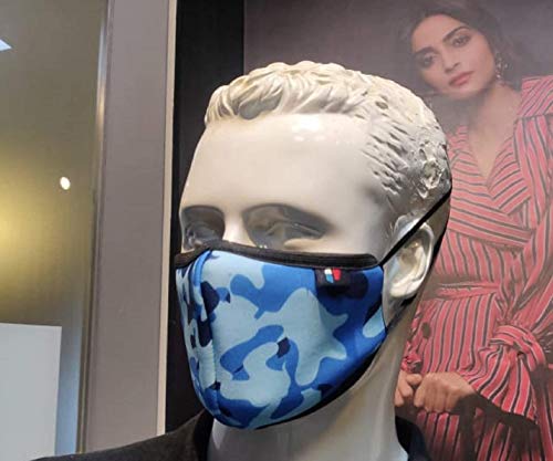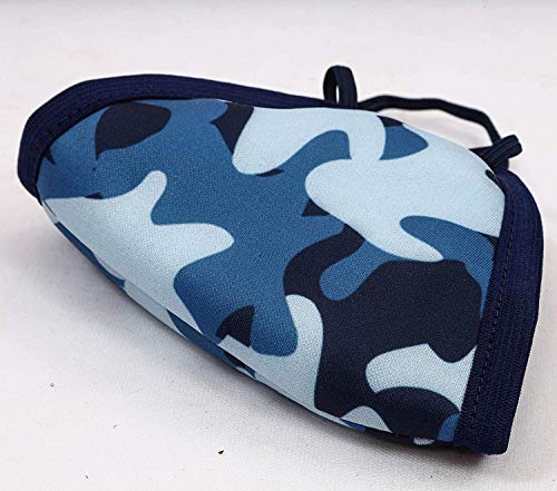 Confezione da 5 maschere protettive blu militare, resistenti agli spruzzi, traspiranti, lavabili, con sistema di filtraggio a 6 strati per un uso quotidiano confortevole
