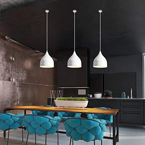 Confezione da 3, Moderno Elegante Lampada a sospesione Luce pendente per cucina Isola Tavolo della sala da pranzo Bar Loft Soggorno Altezza regolabile Lampadario Ferro Tondo Retro Paralume, Bianca