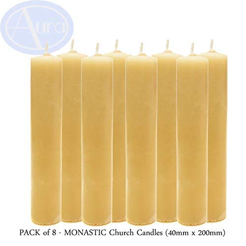 Confezione da 8 candele - monastic chiesa. Ognuno misura 40 mm x 200 mm.