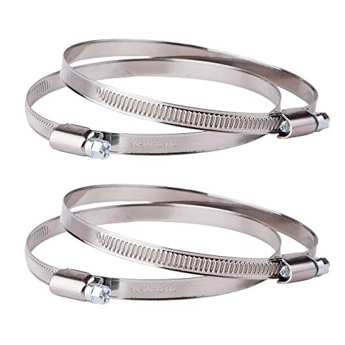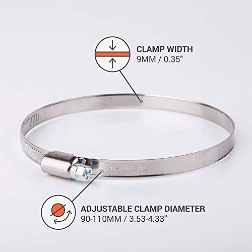 Confezione da 4 morsetti regolabili in acciaio inox per tubo flessibile con vite senza fine regolabile Ø 90-110 mm (4)