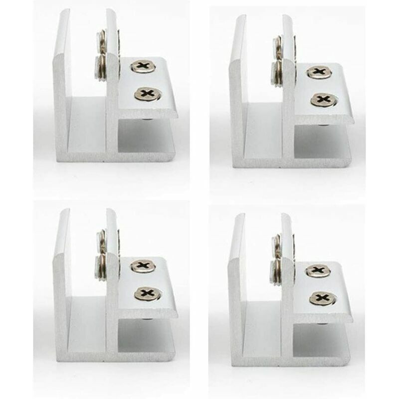 Set di 4 morsetti per vetro a 90 gradi, supporto per vetro, 2 morsetti fissi a 90 gradi per pannello. Realizzato in lega di alluminio, durevole, antiruggine e resistente all'usura, lunga durata. Con viti regolabili, adatto per pannelli di vetro con spessore di 10-12 mm. Applicazioni: pannello di recinzione in vetro, pannello da tavolo, come vetrina, cantina, recinzione per piscina, recinzione per balcone, ecc. .