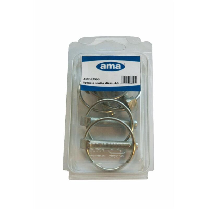 Spina a scatto in acciaio con molla a forma tonda perno 11 mm. Per alberi 30/38 mm. Lunghezza 56 mm. Confezione 5 pz
