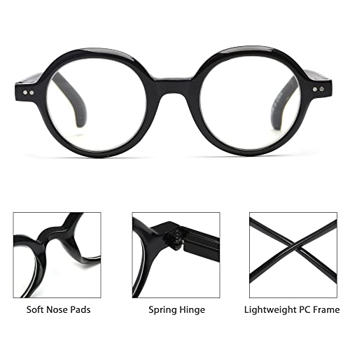 JM Confezione da 4 Occhiali da Lettura Rotondi, Lettore di Computer con Blocco della Luce Blu per Donna Uomo, Cerniera a Molla +2.5