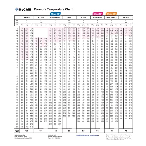 Gas refrigerante 100% organico Minus 50, Guardare tavola di pressione per regolazione e scheda di sicurezza, HYCHILL, Per sistemi con R22 R404 R407C R502 e sostituti, confezione usa e getta 995 ml, peso netto 375 g, valvola inclusa
