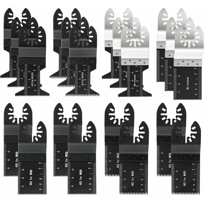 20 lame per sega in metallo e legno, compatibili con la maggior parte dei sistemi di bloccaggio rapido e con le vecchie viti esagonali. Realizzato in acciaio al carbonio di alta qualità e tecniche di produzione di alta qualità che garantiscono velocità di taglio, resistenza all'usura e durata superiore. Marcatori di lunghezza incorporati su entrambi i lati, un lato è in pollici e l'altro centimetro è sicuro di ottenere tagli precisi facilmente e rapidamente mentre lavori. 2 tipi di lame di precisione con denti ondulati più lunghi appositamente progettati per tagli più rapidi e puliti nel legno e nella plastica. 20 pezzi contengono 6 diversi tipi di lame per sega per il taglio di legno, metallo, plastica e altri materiali, ogni lama è specifica per uno scopo specifico. Le nostre lame oscillanti soddisfano una varietà di esigenze che possono essere utilizzate per l'officina, la casa o altri luoghi. Compatibile con i seguenti multiutensili: Black Decker, Bosch, Craftsman, Chicago