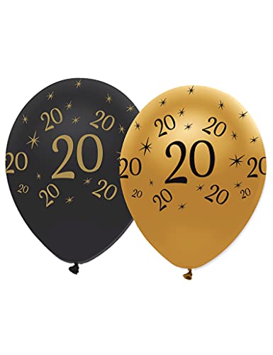 Confezione 6 palloncini nero e oro per compleanno 20 anni