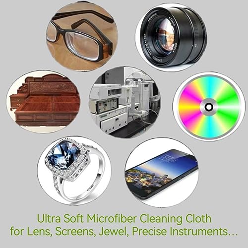 Cura professionale per una visione chiara ——Il materiale ultra-morbido e privo di lanugine rende questo panno per la pulizia sicuro al 100% per la pulizia di polvere, striature, macchie, impronte digitali, oli, segni da schermi, occhiali, lenti, binocoli, telescopi, gioielli e altre superfici delicate.
