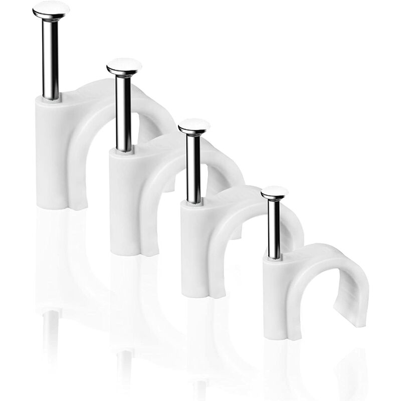 1 dimensioni - 1 dimensione fermacavi: 8 mm x 300 pezzi. Soddisfa l'organizzazione di cavi di dimensioni maggiori a casa, puoi organizzare facilmente una varietà di specifiche dei cavi. [Chiodo in acciaio] Le fascette per cavi con chiodo in acciaio sono più resistenti delle fascette per cavi. - cavi autoadesivi, i fili lo faranno non cadere frequentemente e non perdere tempo nella rilavorazione. Le fascette possono essere inchiodate al muro di cemento. [Resistente] Materiale plastico resistente, lo stile bianco è più versatile e si fonde con l'ambiente domestico per renderlo più pulito. [AMPIO UTILIZZO] I fermacavi perfetti per cavo coassiale RG8X, RG58, RG59 o LMR 240, cavo coassiale audio o video digitale RG6, cavo di rete Ethernet Cat 5, Cat 6, altoparlante da 12 a 16 AWG a filo alto, cavo telefonico, cavo USB, eccetera. Rendi la tua casa più pulita e libera molto spazio. Le fascette per cavi possono anche migliorare la sicurezza dell'uso dell'elettricità e proteggere la
