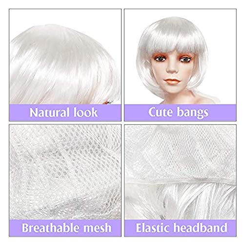 Parrucche corte da donna con taglio a caschetto: confezione da 6 parrucche lisce da 30,5 cm, con frangia piatta, capelli sintetici e colorati, per cosplay e uso quotidiano + 6 calotte per parrucca in omaggio.