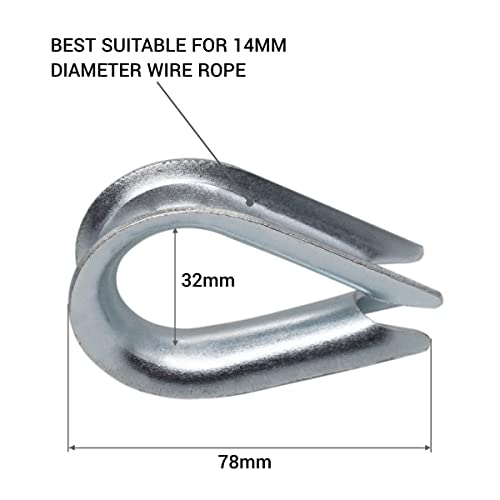 Confezione da 4 pezzi DIN 6899B - Ditali a fune in filo zincato, 14 mm, cuore per funi in acciaio, 4 pezzi, 14 mm