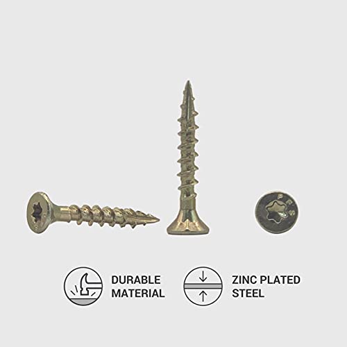 Confezione da 200 pezzi in acciaio zincato 3,5 x 25 mm giallo viti per legno, testa Torx, tipo 17, testa svasata, filettatura parziale, viti truciolari (200, 3,5 x 25 mm)