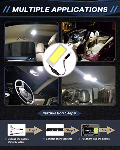 Confezione da 4 lampadine COB 36-SMD LED, confezione da 4 adattatori per luce T10, confezione da 4 adattatori per cupola Festoon, diversi adattatori possono essere collegati a diversi modelli