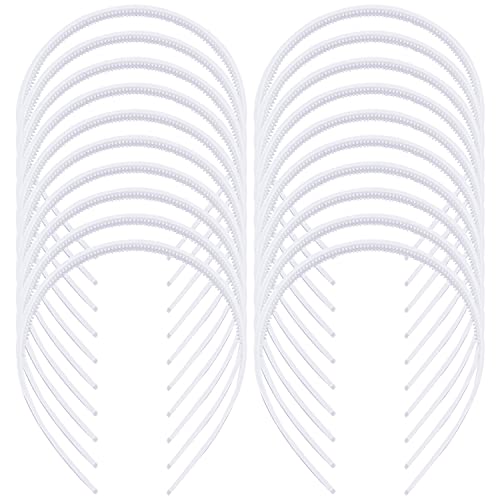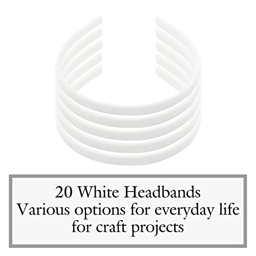 Confezione da 20 pezzi, colore bianco, tinta unita, 1 cm, sottile, in plastica dura, fascia elastica per capelli, con chiusura a cerchio, per capelli, accessorio fai da te, per donne e ragazze