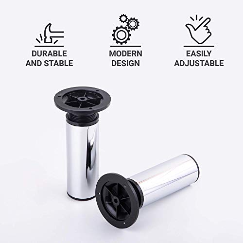 Confezione da 4 pezzi cromo lucido 15 cm altezza gambe mobili regolabili tondo Ø 50 mm, gambe in metallo, viti incluse (4, cromo lucido)