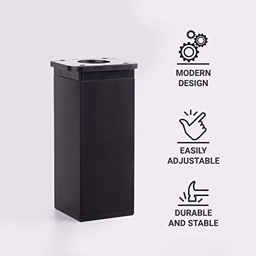 Confezione da 8 pezzi, gambe per mobili in stile moderno, regolabili in altezza, profilo angolare: 40 x 40 mm, materiale: alluminio, plastica, viti incluse (8, nero)