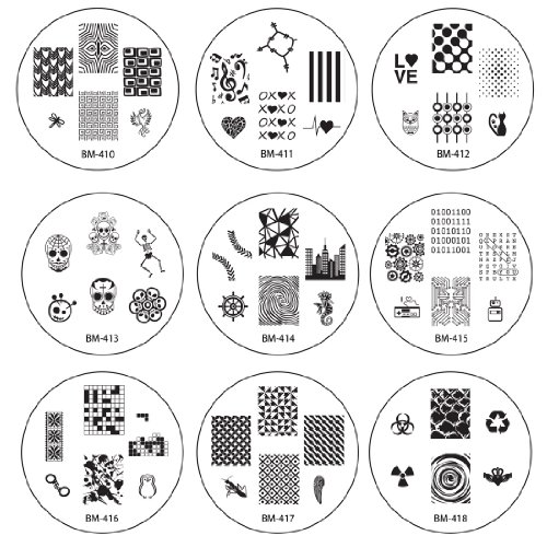 26 fogli di motivi da incollare sulle unghie a un prezzo eccezionale. Codici tavola: BM401 - BM426.