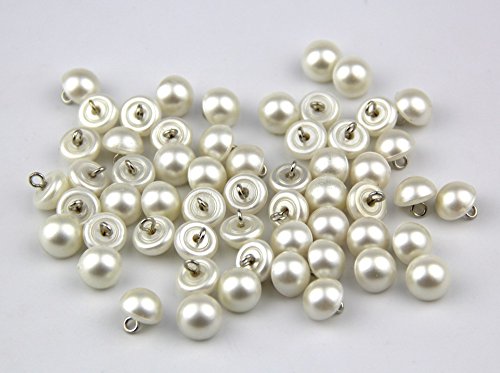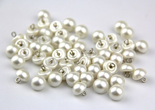 Confezione da 200 pezzi di perle bianche, bottoni da 10 mm, mezza sfera, con gancetto tondo di metallo, per l'artigianato, il cucito, lo scrapbooking, sciarpe e abbigliamento.