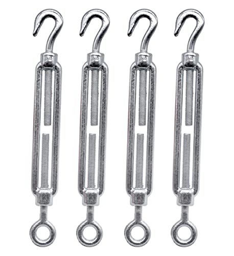 Confezione da 4 pezzi - Tenditore M5, tenditori regolabili con gancio e occhio, tensione del cavo della corda (4 pezzi, M5)