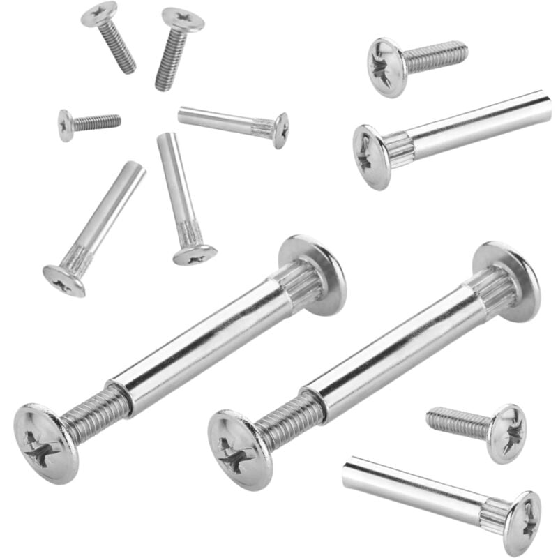 Tubetto in Acciaio Testa Piatta con Vite. GIUNZIONI per mobili a Cannocchiale. CARATTERISTICHE: Tubetto Testa Piatta con Vite. CONFEZIONE DA 50 o 100 PEZZI. DIMENSIONI: Lunghezza Tubetto: 28mm. Lunghezza Vite: 15mm. Quote Dettagliate visibili in foto. MATERIALE: Acciaio. FINITURA: Nichelato Lucido. CONTENUTO DELLA CONFEZIONE: A Scelta tra 50 o 100 pezzi. Per "PEZZO" si intende una coppia "tubetto + vite".