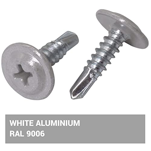 SKIR'CO (confezione da 400 pezzi) Verniciate 4,2 x 16 mm Viti autoperforanti, testa a croce modificata Phillips, vite in lamiera, testa wafer (400, alluminio bianco RAL 9006)