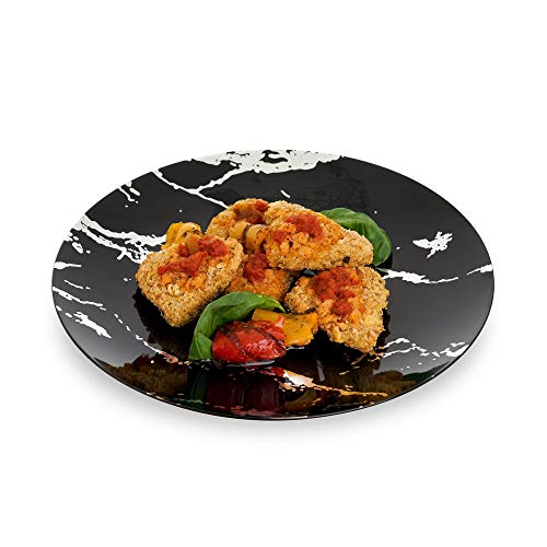 Elegante design in marmo: i piatti in plastica nera e argento aggiungeranno un tocco elegante alla tua festa. Il design unico in marmo rende la tua festa unica e accattivante.