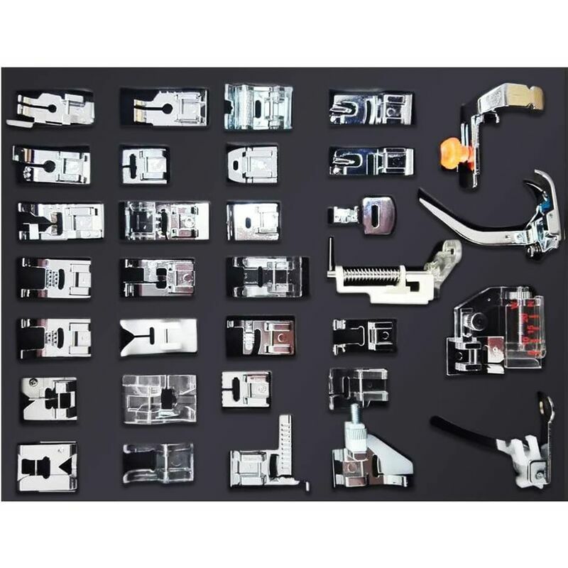Confezione da 32 piedini per macchina da cucire compatibili con la maggior parte delle macchine da cucire multifunzione per uso domestico con gambo basso, come Singer, Baby Lock, Brother, Janome, ecc. 1 piedino per frangia;
