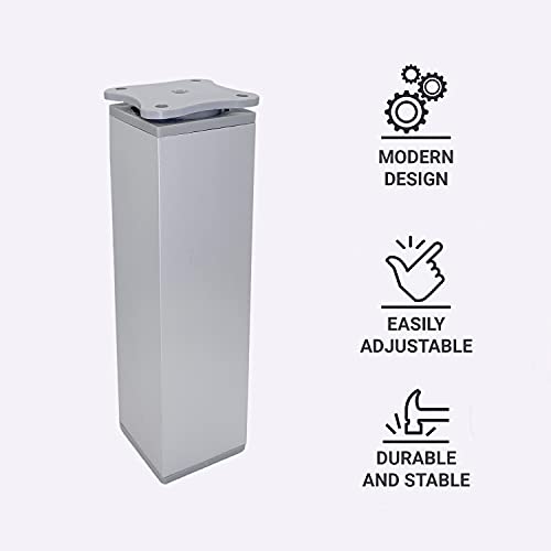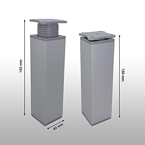 Confezione da 16 piedini regolabili in altezza per mobili, profilo angolare: 40 x 40 mm, materiale: plastica, alluminio, viti incluse (16, 15 cm di altezza)