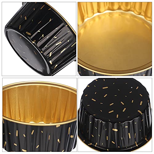 Ampia applicazione: una tazza in alluminio con due applicazioni, è uno stampo da forno e anche un bel imballaggio, non ha bisogno di demuffa e ridurre le perdite, ideale per usi interni ed esterni, picnic, campeggio, cucina, tutti i tipi di feste e riunioni e così via. Le tazze da forno sono utilizzate per mousse brownies, muffin, creme brûlée, torta di mele, budini, cupcake, torte di formaggio, ecc.